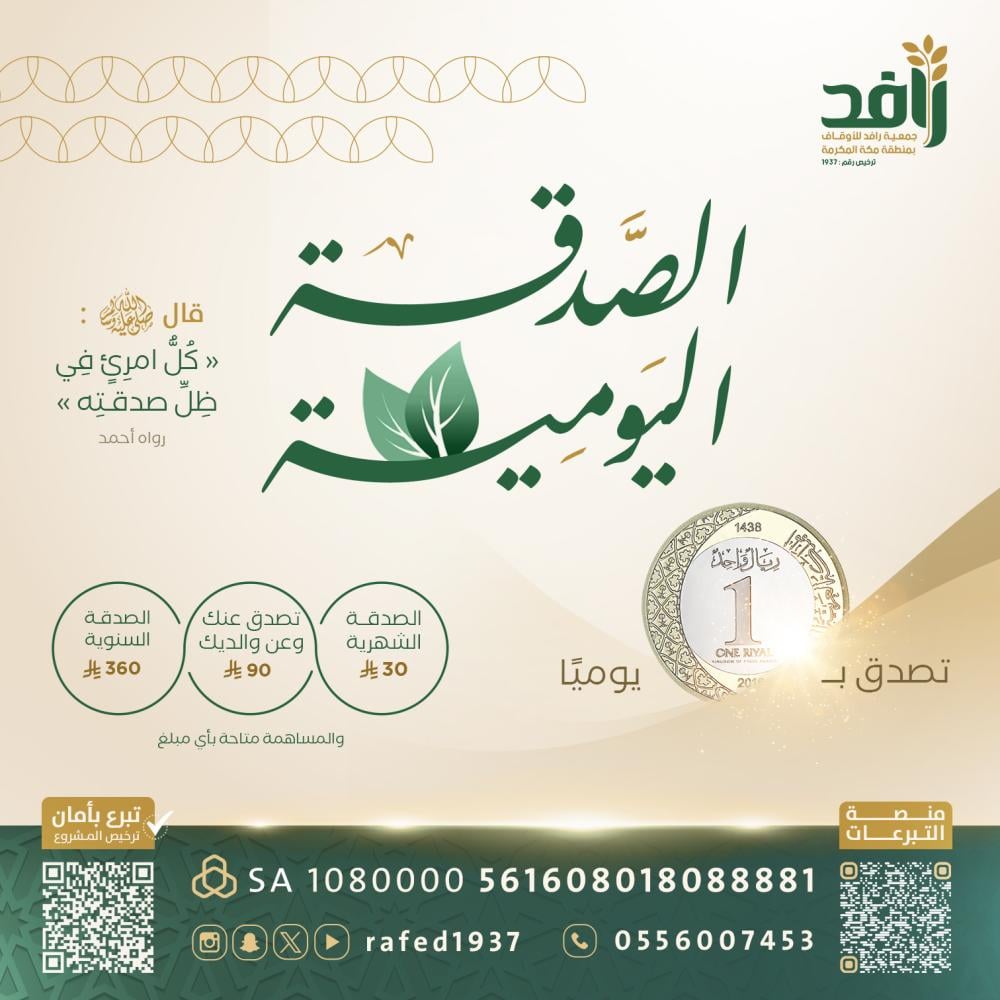 اجعل لك صدقة يومية للمشاريع الوقفية . . اغتنم الفرصة و ساهم في استدامة الأوقاف بمنطقة مكة المكرمة و تصدق عنك وعن والديك و من تحب لتكسب دعوة المل...
